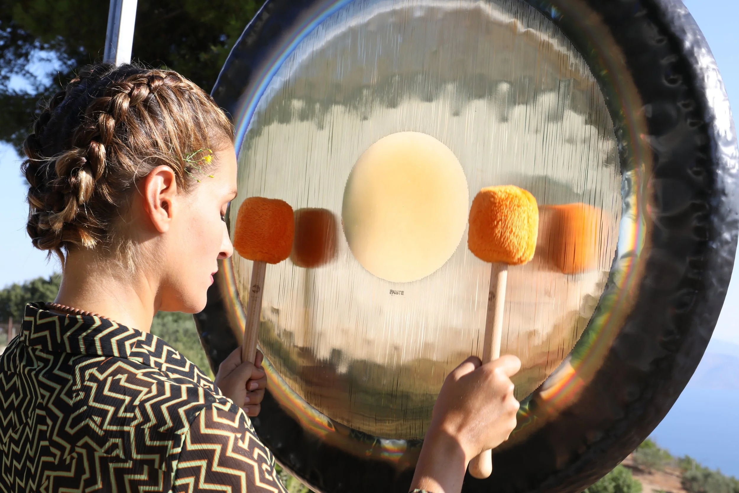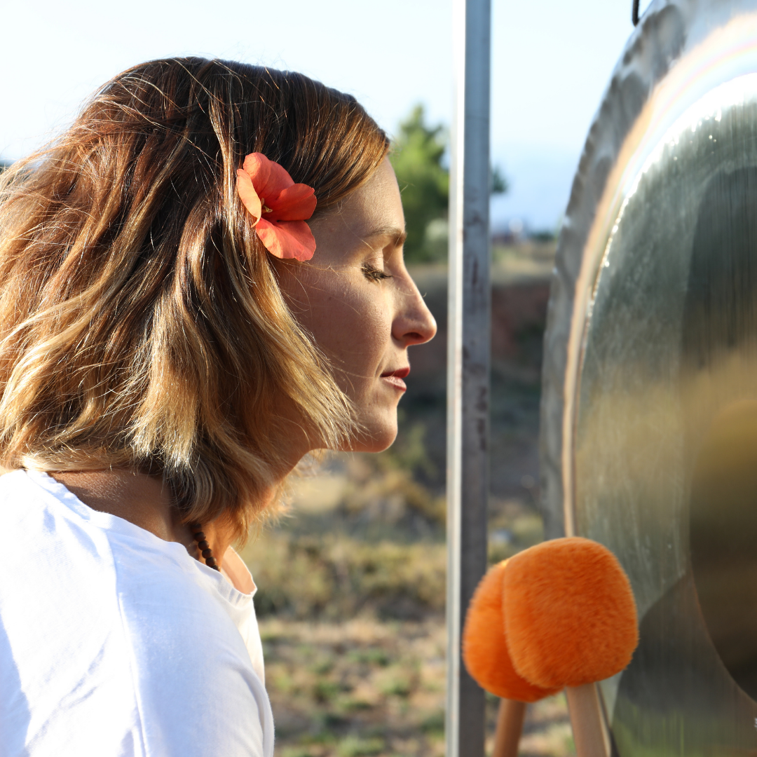 Ana Sónar (Anastasia Liaskou) is a certified Gong Master and sound healing practitioner with nearly a decade of experience working with individuals and groups.