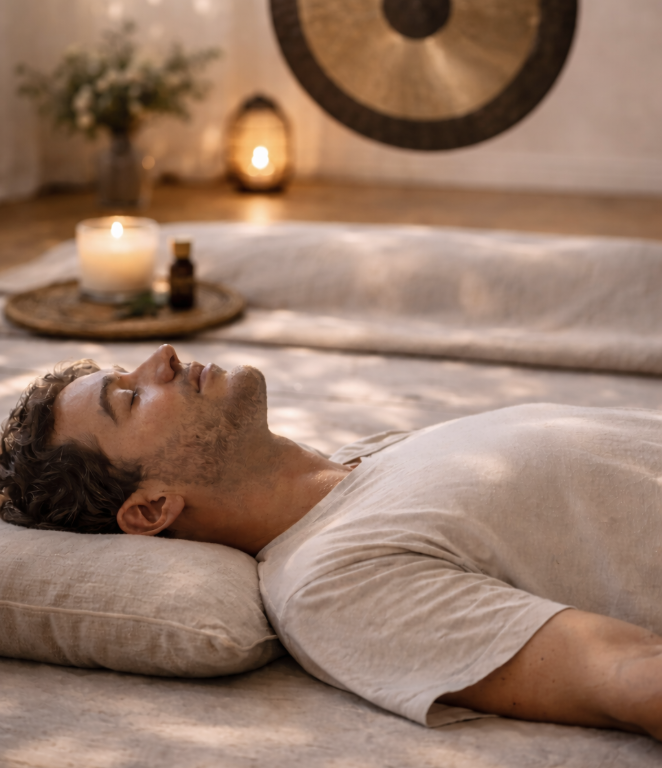 A structured sound experience designed for professional environments. Guided with gongs and resonant acoustic instruments, the session supports nervous-system balance, mental clarity, and sustainable performance.